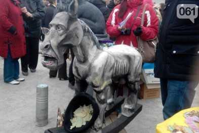 "Это первый в мире 5D памятник интерактивной лошади. Когда санкции сдавливают ему яйца, говорит знаменитую фразу - "Дебилы б**" - пояснил на своей странице в Фейсбук автор памятника Максим Дрозденко.