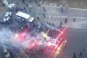 Вчера, 16 октября, перед матчем чемпионата Украины по футболу "Динамо-Шахтер" фанаты устроили шествие до стадиона "Олимпийский" с горящими фаерами и лозунгами "Донецк - это Украина".