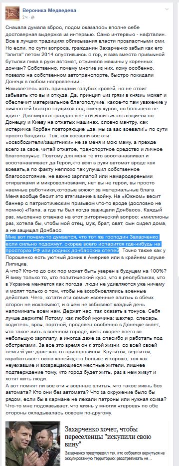 В соцсетях появились отзывы, в которых люди выражают свою позицию относительно таких "новых элит", да и самого Захарченко.