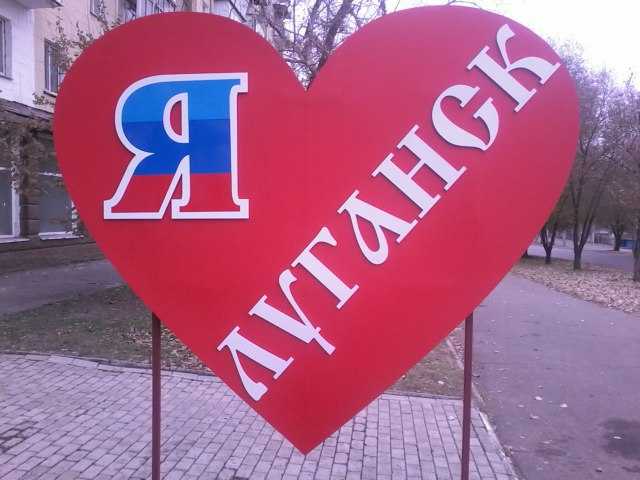 В Луганске установлен еще один знак «Я люблю Луганск». При этом авторы конструкции изготовили букву «Я» в цветах флага «ЛНР». А слово люблю заменили сердечком.