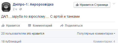 Сообщение о боевых действиях этой ночью в районе Донецкого аэропорта несколько часов назад появилось на странице батальона "Днепр-1" в Фейсбук. По данным аэроразведки батальона, в окрестностях ДАПа идут сражения с применением артиллерии и танков.