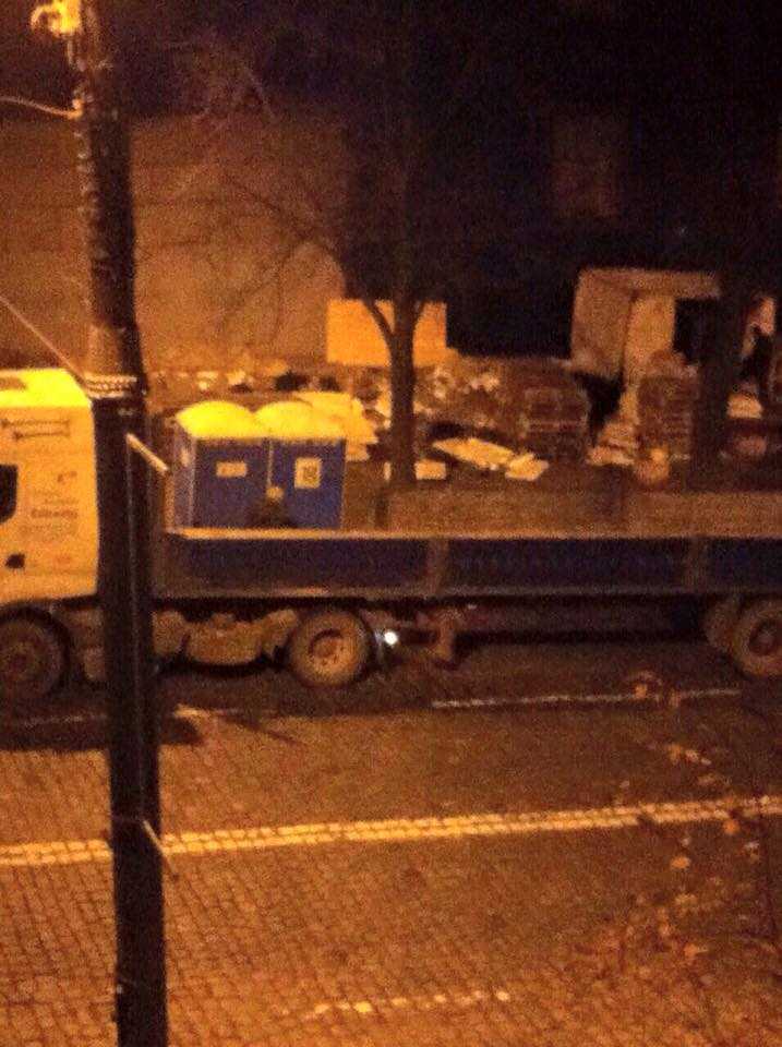 По ее словам, процесс уборки начался около полуночи. Подъезжали машины и на них грузилось все, что было на месте, где проходил организованный Радикальной партией Олега Ляшка протест против повышения тарифов.