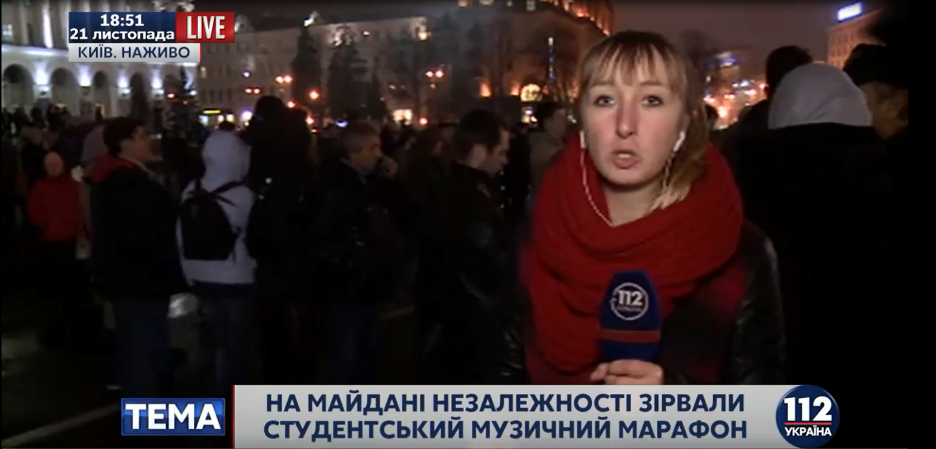 "Концерт продлился недолго, около 20 минут. Напротив организовали импровизированную сцену, на которой организовали вече. Люди представляются представителями "Автомайдана". У этих двух частей людей просто было разное видение того, как отметить День достоинства. Одни хотели отметить его концертом, другие говорят, что это неуместно", - сказала корреспондент.