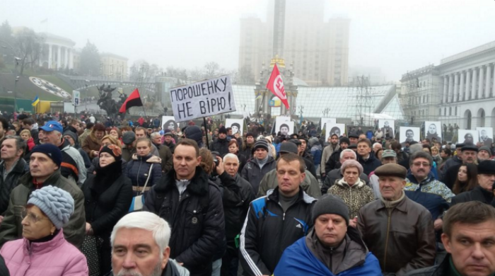 Отмечено, что главной темой сегодняшнего вече является недовольство деятельностью президента Украины Петра Порошенко.