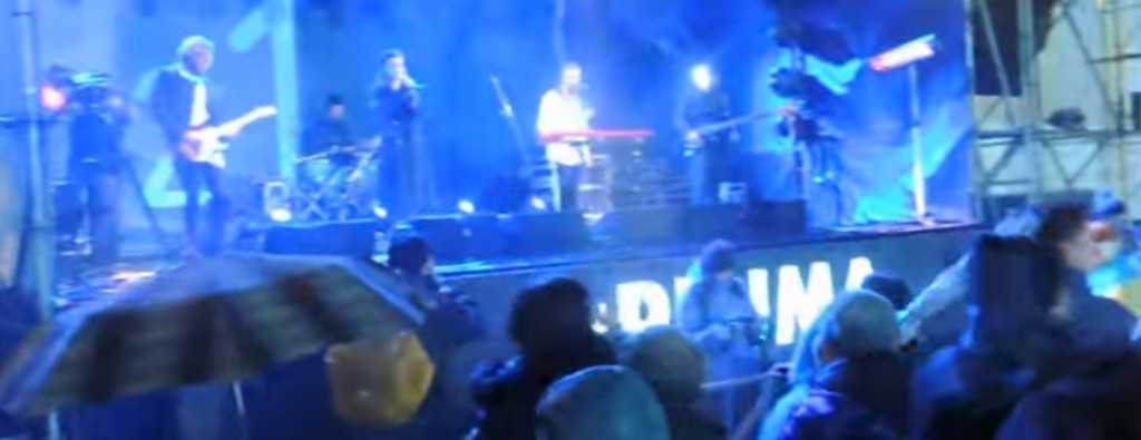 Этот факт и само проведение концерта в день траура очень разозлило собравшихся на Майдане людей, которые планировали провести реквием по погибшим. Десятки активистов с криками "Ганьба" опрокинули ограждение и освистали выступавших. В результате артисты прекратили концерт и после исполнения одной песни покинули сцену.