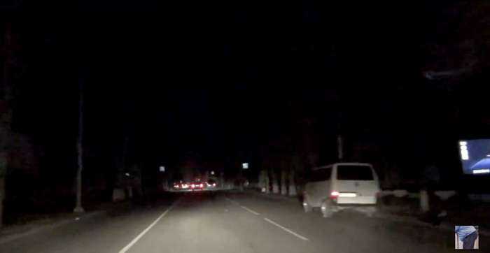 «Светофоры не работают… Фонари не работают… В городе дорогу освещают только автомобили своими фарами... Выезжаем на площадь Ушакова… Свет есть только в тех местах, где хозяева позаботились об этом заранее и установили бензиновые генераторы. В остальных местах света нигде нет. Гостиница «Украина» - полностью без света…», - показывает и одновременно комментирует житель Севастополя, передвигаясь на своем автомобиле по вечернему Севастополю.