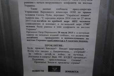 В Мариуполе распространяют сепаратистские листовки с проклятием Бандере в стихах.