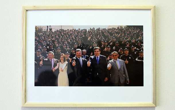 На пятом этаже Одесской облгосадминистрации вместо привычных картин теперь висят фотографии губернатора Михаила Саакашвили с разных мероприятий, а также распечатки статей из зарубежных СМИ.