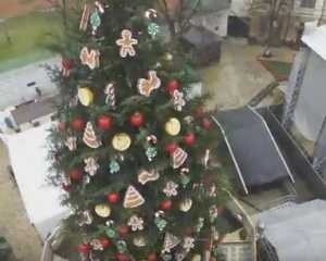 На дереве можно увидеть яблоки, конфеты и игрушки в форме традиционного рождественского печенья - имбирных человечков.