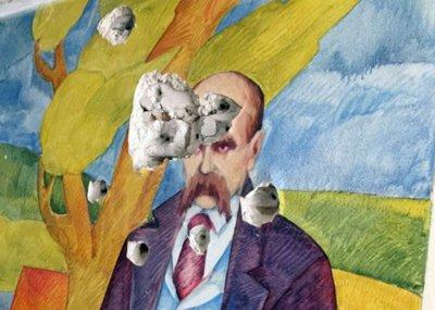 Со слов очевидцев, боевики поиздевались не только над портретом поэта. Вандализму подверглись изображения символизирующие семью и родину.