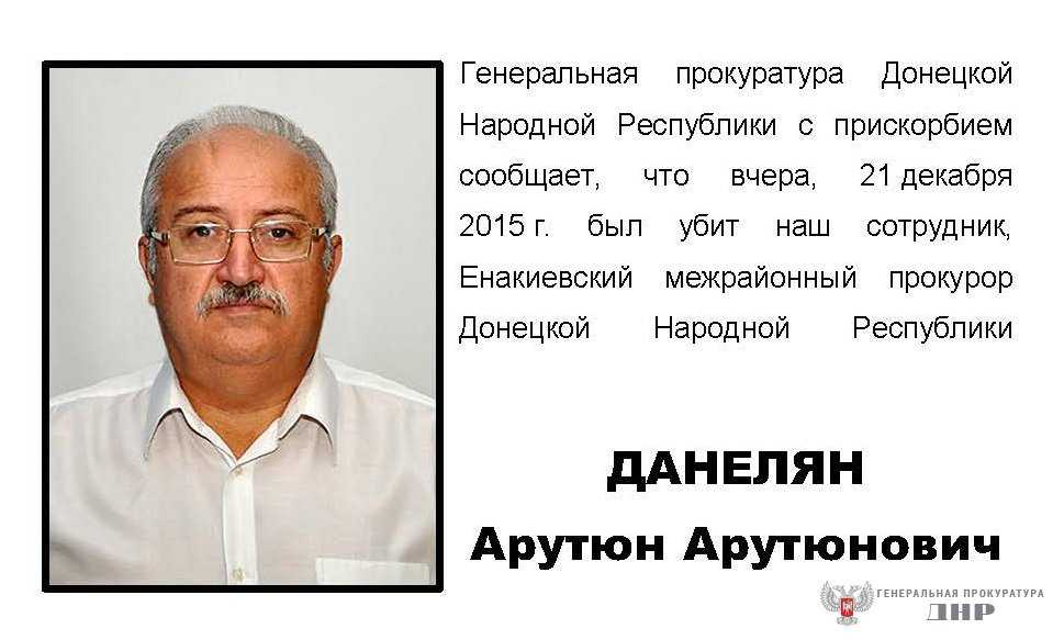 Журналист Денис Казанский сообщил, что убитого российскими наемниками «прокурора» оккупированного города Енакиево звали Арутюн Даниелян. Происшествие случилось в Шахтерске, что на территории так называемой «Донецкой народной республики».
