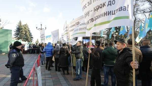 24 декабря возле здания Верховной Рады проходит митинг, где недавно случилось погребальное выступление. В акции принимают участь аграрии, которые выступают против налоговой реформы, предложенную Министерством финансов.