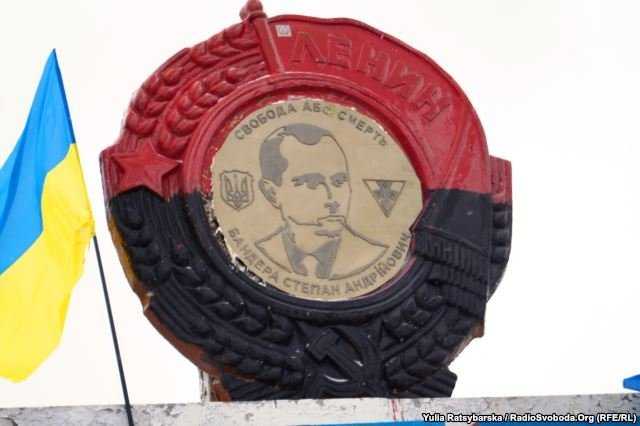 При въезде в город Днепропетровск активистам был установлен изготовленный собственными руками памятный знак Степану Бандере, руководителю Организации украинских националистов.