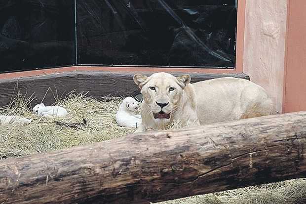 Под Киевом в частном зоопарке "XII месяцев" родилось три белых львенка. Всего в мире насчитывается около 300 таких особей.