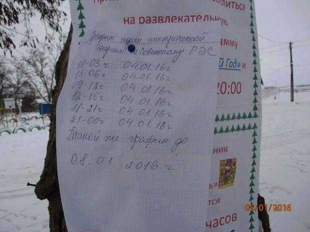"Некоторые люди сомневаются в том, что электричество в Крыму дают по часам. Вот графики из некоторых городов или районов, которые вдобавок еще и НЕ соблюдаются (естественно, в худшую сторону)", - написала Эльзара Абдураманова на своей странице в "Фейсбук" и продемонстрировала соответствующие фото.