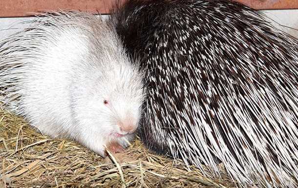 В Харьковском зоопарке в "семье" азиатских дикобразов родился детеныш белого окраса.
