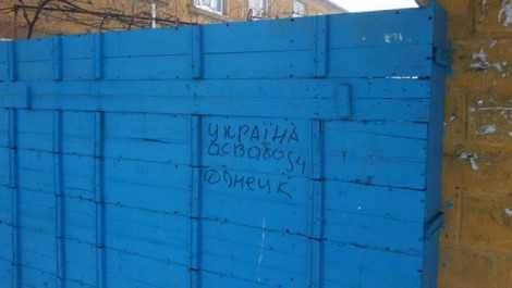 Так на заборе одной из улиц оккупированного Донецка появилась надпись: «Украина, освободи Донецк».