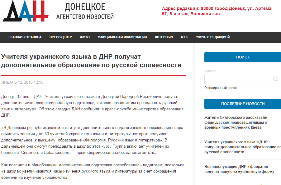 В так называемом "министерстве образования ДНР" планируют практически остановить преподавание украинского языка в школах, а всех учителей переквалифицировать на обучение русскому языку.