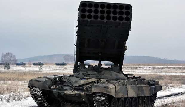 Главное управление разведки Минобороны Украины сообщило, что возле Горловки и Донецка обнаружены запрещенное вооружение: САУ и тяжелые огнеметные системы ТОС-1 «Буратино».
