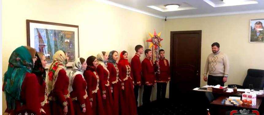 Поздравления звучали в кабинете у «главы» Горловки с портретами главаря «ДНР» Александра Захарченко и президента РФ Путина под распевание хором украинских колядок.