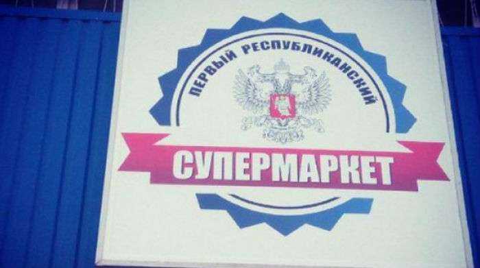 Открытие отжатого боевиками супермаркета сопровождалось большими очередями. На входе в магазин оккупанты разместили свою символику.
