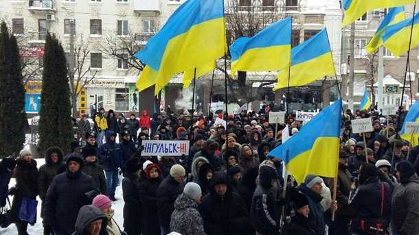 Сегодня на площади перед Кировоградским городским советом собралось более полутысячи человек, которые митингуют против переименования города в Ингульск.