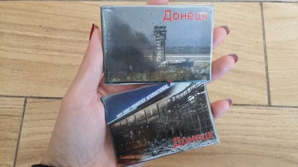 Волонтер Юлия Сегеда написала в своем Facebook о весьма впечатляющих сувенирах, которыми вовсю торгуют в Донецке - это магнитики с изображениями разрушенного Донецкого аэропорта.