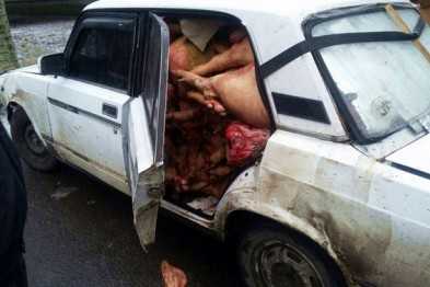 И в багажнике, и в салоне автомобиля в антисанитарных условиях было обнаружено 9 туш свинины весом более 1 300 кг на общую сумму около 100 тысяч гривен. При этом никаких документов у «предпринимателей» при себе не оказалось. Происхождение мясной продукции установит следствие.