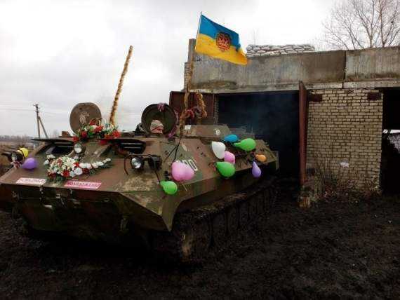 «Венчание в зоне АТЕ. 28 бригада. Руслан из Тернопольской области, а Наталья – из Донецка. Свадьба в стиле «милитари». Лимузин в оригинале», – говорится в сообщении.