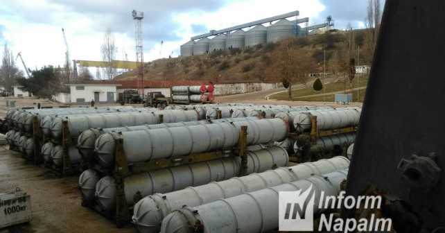 В ходе OSINT-мероприятий, проведенных волонтерами международного сообщества InformNapalm на крымском направлении, в морском порту Севастополя обнаружено скопление нескольких десятков транспортно-пусковых контейнеров к зенитно-ракетным комплексам типа С-300, предположительно завезенных для пополнения боезапаса зенитно-ракетных полков оккупационных войск РФ, развернутых на полуострове.