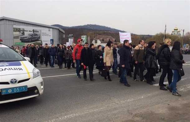 Около 15:00 участники акции протеста заблокировали международную трассу Киев – Чоп в районе обеих АЗС – в сторону Ужгорода и в сторону Свалявы, а также въезд в город через улицу Д.Галицкого. Во всех трех местах люди ходят толпой по пешеходным переходам.