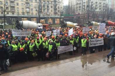 Сегодня в Киеве около 300 строители пикетируют здание Киевской городской администрации.