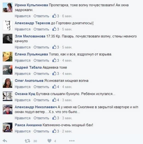Кроме того, сообщается, что взрывная волна донеслась и до Ясиноватой, Авдеевке, Красного Пахаря. Что касается Донецка, то взрыв был слышен во всех районах города.
