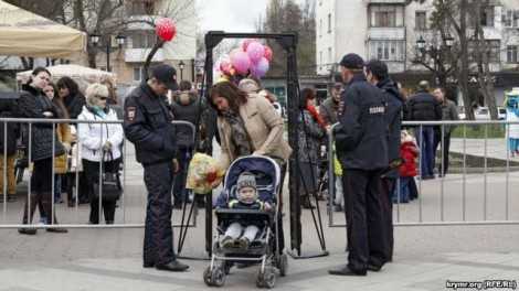 В аннексированом Симферополе во время празднования Масленицы каждый, каждый участник мероприятия должен был пройти металлодетектор. Среди местных жителей даже появилась шутка, что такие меры приняты из-за того, что оккупационная власть боится Майдана.