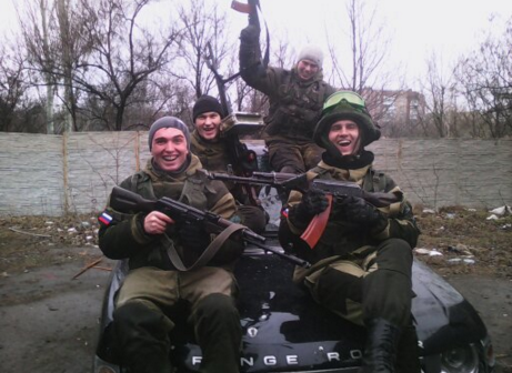 Еще одно групповое фото российских любителей фашизма за март 2015 г. Предположительно, в пригороде Донецка.