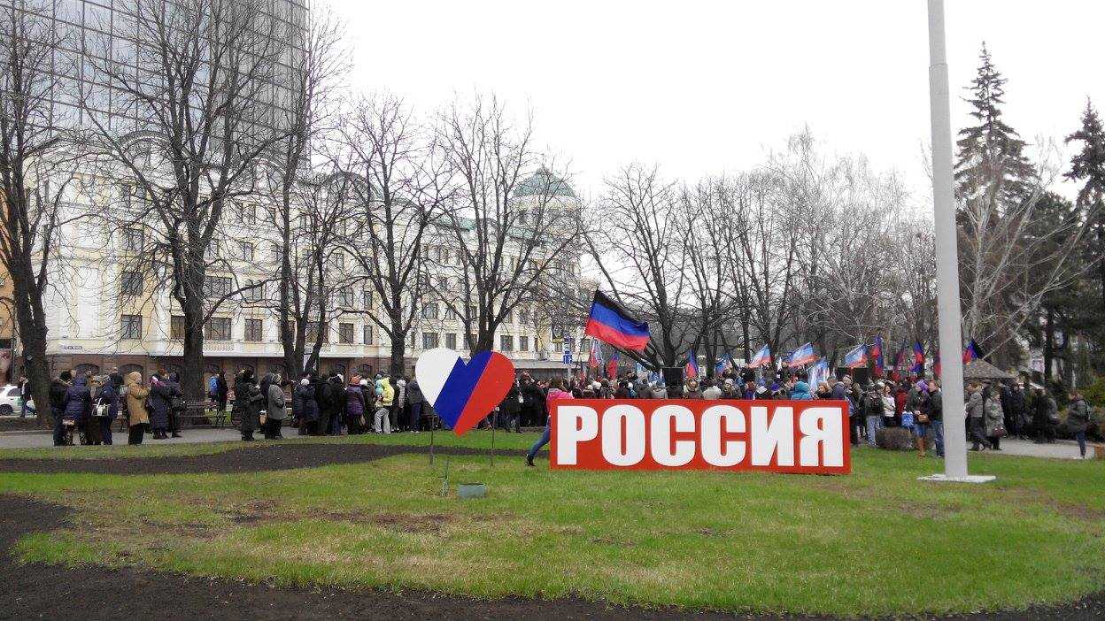 Сегодня, 18 марта, в оккупированном Донецке прошел митинг, который члены группировки «ДНР» посвятили аннексии Крыма.