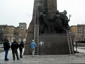 На монументе Ленину в центре Запорожья демонтируют горельеф.
