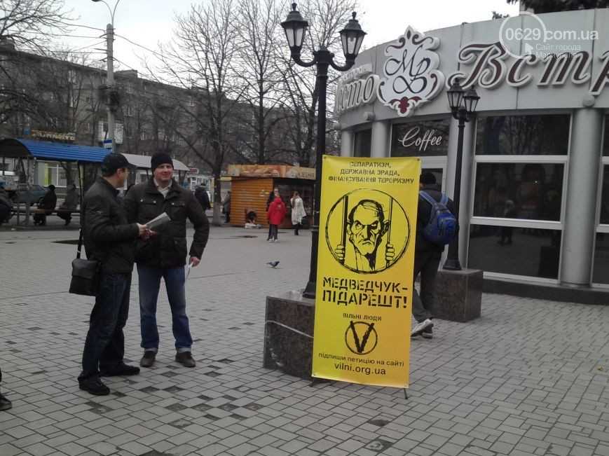 В центре города установлено семь плавающих точек, на которых активисты собирают подписи у мариупольцев о привлечении к уголовной ответственности политического деятеля, главу общественного движения "Украинский выбор" Виктора Медведчука.