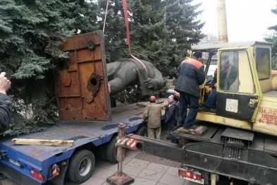 На данный момент монумент, в 9.00, снесен с постамента вместе с плитой, на которой стоял. Причем, как сообщает корреспондент 0629, демонтаж проходил под тройной охраной. К журналисту несколько раз подходили с вопросом и интересовались, что он делает на территории комбината.