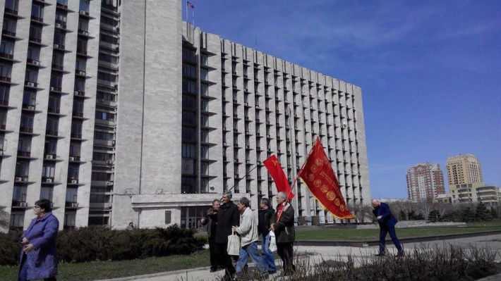 Как сообщают местные жители, в преддверии “праздника” сепаратисты стали срочно ремонтировать асфальт, но больше никаких приготовлений замечено не было. Сегодня к захваченному два года назад зданию ОГА пришли пять человек с флагами СССР. Недолго постояв на Октябрьской площади, люди разошлись.