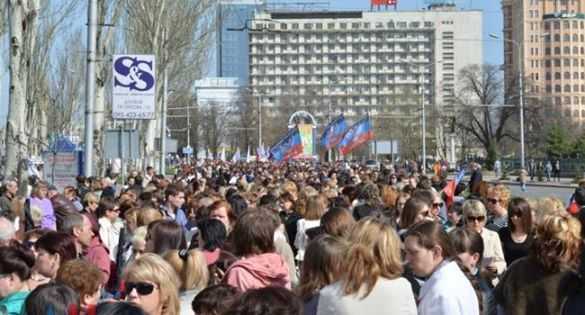 В центре Донецка прошли мероприятия в честь двухлетней годовщины со дня захвата здания Донецкой ОГА пророссийскими митингующими в 2014 году. Об этом в социальных сетях сообщают жители города.