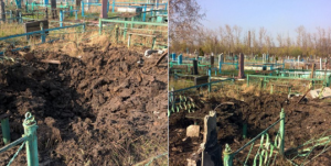 На фото видно, что боеприпасы разорвались непосредственно на самих могилах, оставив после себя обширные воронки.