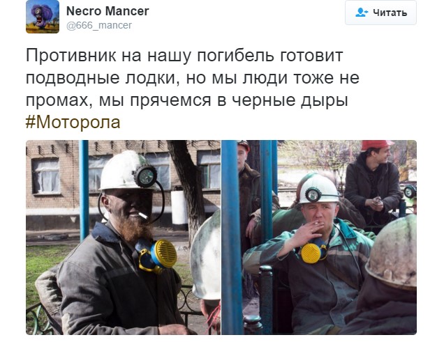 Сегодня, 9 апреля, в соцсети Twitter были опубликованы фотографии сепаратиста Моторолы, который, по всей вероятности, опускался в шахту.