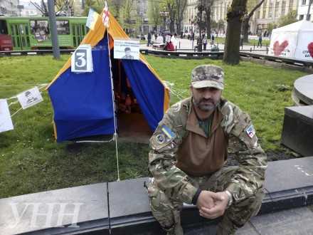 Грузин установил палатку возле памятника Тарасу Шевченко. Сейчас он пьет только воду, от еды отказался. Планирует уже через несколько дней объявить сухую голодовку.