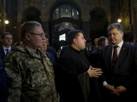 В Гарнизонном храме святых апостолов Петра и Павла Глава государства возложил цветы. П.Порошенко также пообщался с демобилизованными военными-участниками АТО, в частности с защитниками Донецкого аэропорта Остапом Гаврилюком и Луганского аэропорта Остапом Худым.