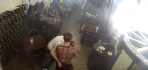 Итак, как видно на камерах, двое пьяных мужчин проводят время за одним из столиков. В какой-то момент в зал для посетителей входят два официанта пивного заведения. Видя их, брат Захарченко тут же вскакивает со своего места и начинает приставать к парням с предложением выпить с ним. Парни отказываются всячески, Сергея Захарченко это злит, он раздражается, не дает пройти официантам на свои рабочие места.