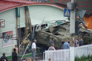 Как сообщалось, в июне 2015 года в Луганск въехала колонна бронетехники, одна из машин которой врезалась в кафе, где находились люди. Позднее в соцсетях луганчане сообщали, что авария произошла из-за того, что боевики "ЛНР" устроили гонки. БМП боевиков передвигалась со скоростью не менее 70 км в час, гусеницами по асфальту.