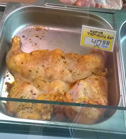 Администрация одного из киевских супермаркетов решила, что собственные названия блюд нужно перевести в связи с чем обычный «цыпленок табака» стал «курка в тютюну».