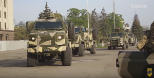 "В городе Одесса состоялась репетиция масштабного мероприятия - показа бронетехники сил НГУ и Нацполиции", - сообщается на странице батальона "Азов" в YouTube.