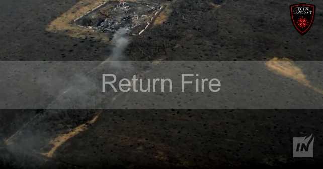 Сначала два пристрелочных выстрела. За ним четкие выстрелы по позициям. У первого беспилотника заканчивалась батарея, и чтобы не терять видео трансляцию, в воздух был поднят второй беспилотник. Проложив маршрут над первой позицией противника, второй БПЛА продолжил корректирование огня, фиксируя точные попадания.